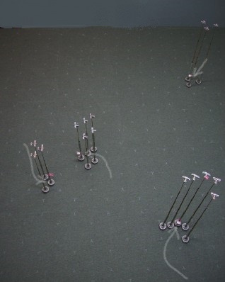 A few turns were spent using 1200′ hexes / 12-second turns as the four groups maneuvered for position.