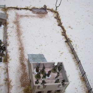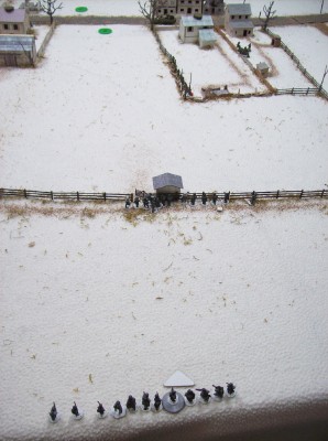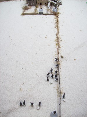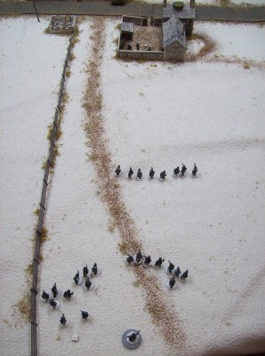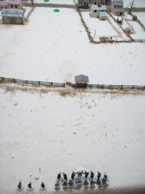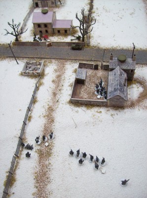 On the right, the reduced garrison of the smithy (who feel they’ve been hung out a bit…) see an entire German platoon moving steadily up the hill toward their position.