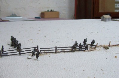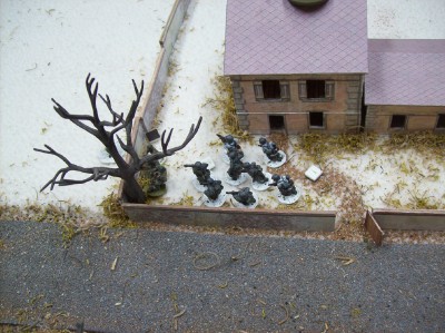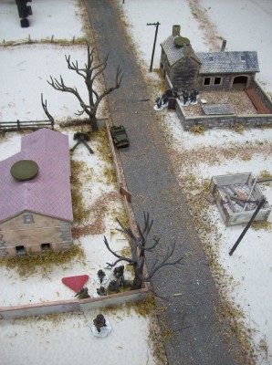 Initial moves on the south see the Sturm Platoon moving up toward the houses faced by an American squad deployed into the entrenchments along the garden edge.