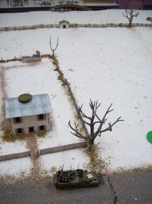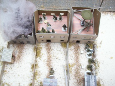 A fresh, very green squad (comprised mostly of HQ men) deployed into the house to support the AT gun, Platoon SL, and M16 (off-camera in road below house) in maintaining the defense on the north.