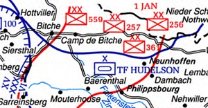 Fond memories of time spent (remotely via Discord) on the Raate Road for some Winter War gaming courtesy of a group in Finland (see here for more on that campaign) led me to visit the forest of the Vosges and Operation Nordwind (where I could use the American and German ‘Bulge’ stuff I had on hand!). A recent book purchase ( Mount Up! We’re Moving Out! ) led the interest-butterfly to land on the actions of the 94th Cavalry Reconnaissance Squadron (part of Task Force Hudelson) on the opening night/day of the German attack.