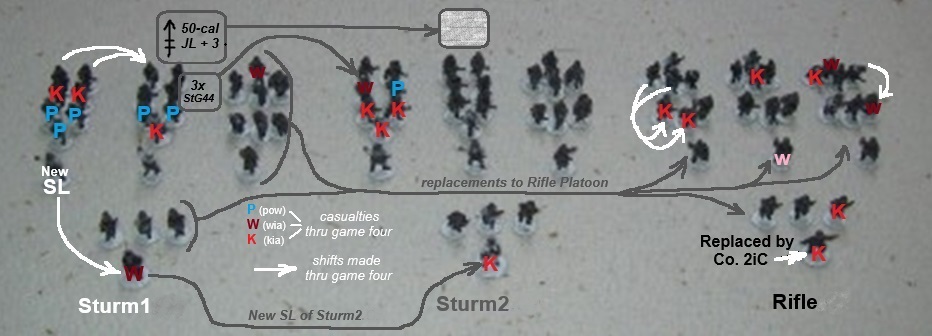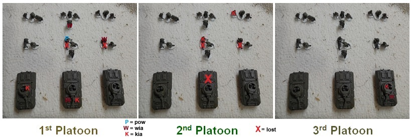 The Sturm and 1st Platoons -both having fought twice and taken the lion’s share of their respective side’s casualties- are in no shape to continue fighting.