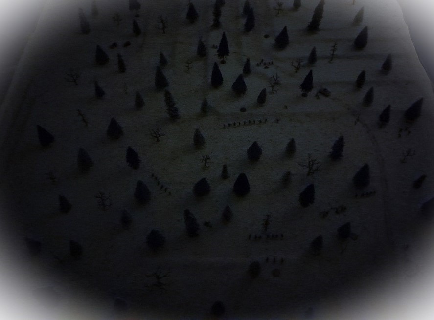 It seems that a second branching path was missed in the night* which gives the enemy two paths down the ridge to Mouterhouse, so the plan (already a bit sketchy) must be remade to cover both tracks.